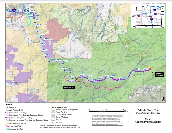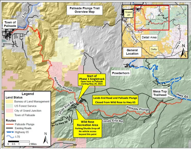 - Know the locations of the emergency exit double track road to Palisade via Cottonwood Canyon.